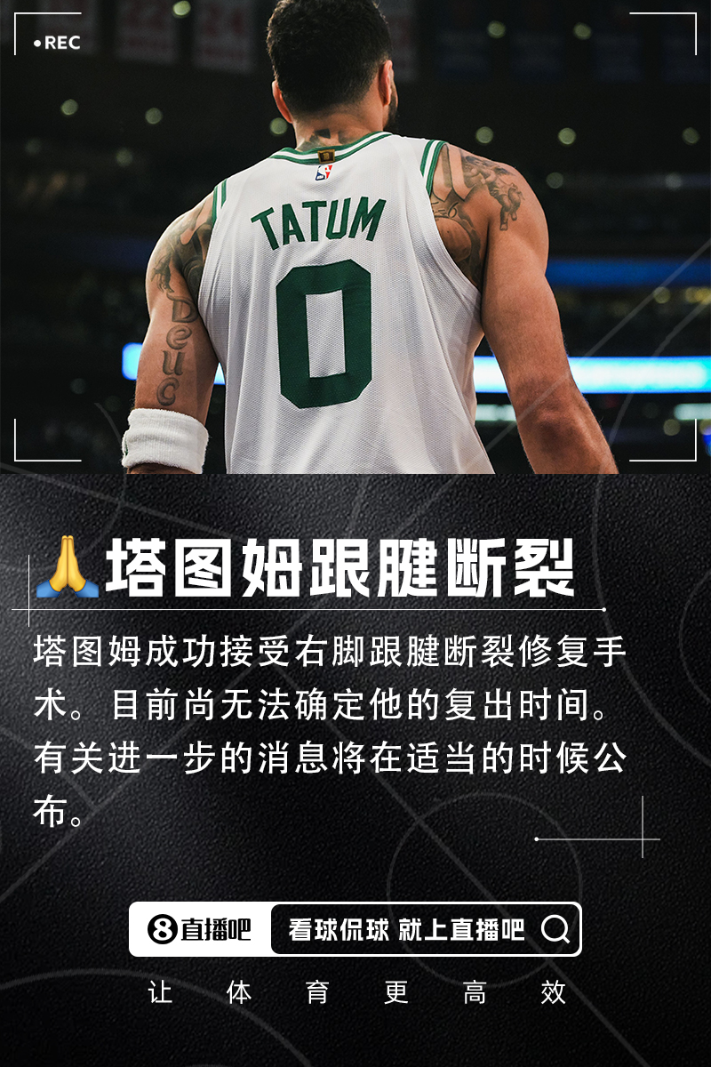 季后赛次轮G4,凯尔特人客场对阵尼克斯的末节,塔图姆无对抗倒地,痛得在地上直打滚;赛后被诊断为右跟腱断裂,绿军最终也以总比分2-4不敌尼克斯,无缘东部决赛。